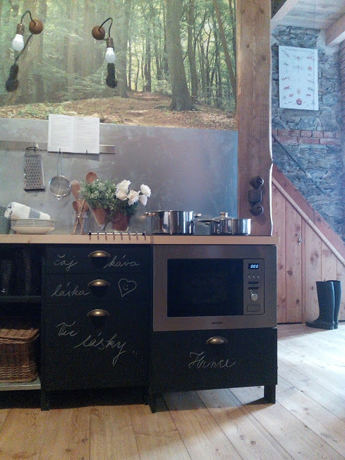 Pri rekonštrukcii sa držali toho, aby zachovali čo najviac z pôvodnej stavby. A tak návštevníci môžu vidieť pôvodné kamenné steny, ktoré dorovnáva všade prítomné drevo. Majiteľka má rada humor, a tak v kuchyni nechala priestor aj na kreativitu hostí. Tí môžu napísať kriedou odkazy priamo na kuchynské skrinky, ktoré sú ošetrené čiernym tabuľovým náterom – takže sa na ne dá veselo písať. To určite ocenia aj deti.
